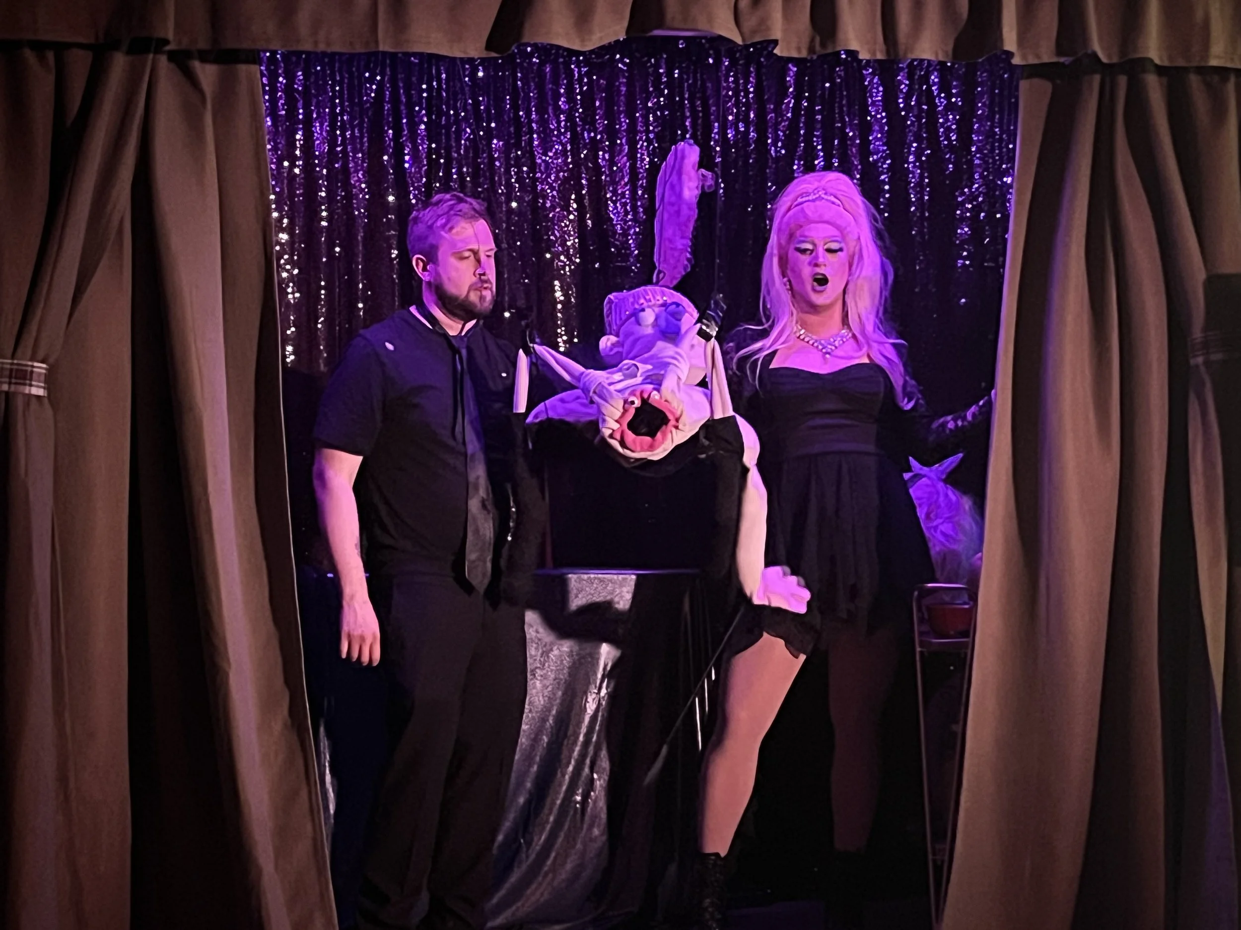 I’ve never seen an audience participation puppet orgy sequence either, but this show had that. A few audience members were given puppets to mime whatever depraved acts they could think of. A couple others were given supplies from the tavern’s restaurant and a microphone in order to make the sound effects while the puppets were getting felt up. It’s amazing what you can do with cole slaw, a microphone, and some creativity.
